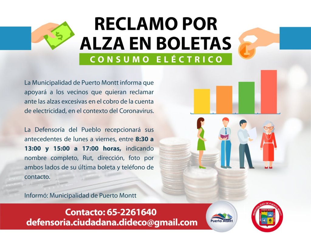 La Municipalidad de Puerto Montt informó que apoyará a los vecinos que quieran reclamar ante las alzas excesivas en el cobro de la cuenta de electricidad, en el contexto del coronavirus.