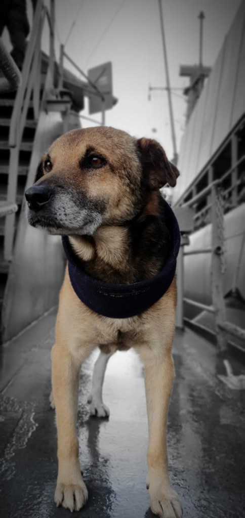 Ése año, un grupo de marinos lo encontró en Punta Chana cuando sólo era un cachorro, por lo que, tras la devastación que dejó la emergencia, fue rescatado y llevado hasta el buque patrullero Micalvi.