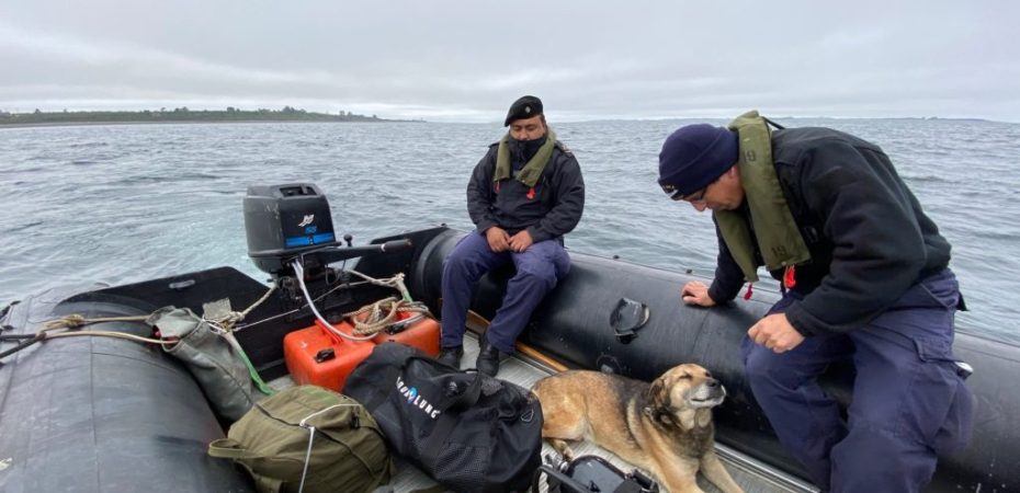 Ése año, un grupo de marinos lo encontró en Punta Chana cuando sólo era un cachorro, por lo que, tras la devastación que dejó la emergencia, fue rescatado y llevado hasta el buque patrullero Micalvi.