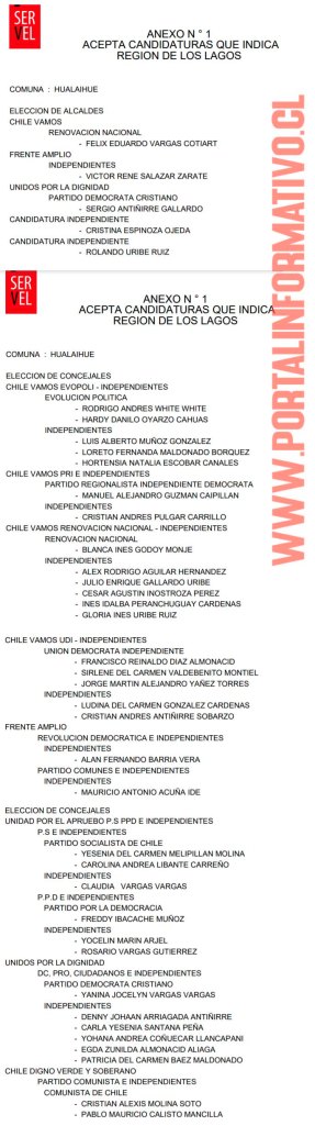 Para la comuna de Hualaihué estos fueron los candidatos confirmados, publicados en la edición impresa del Diario El Llanquihue en la presente jornada.