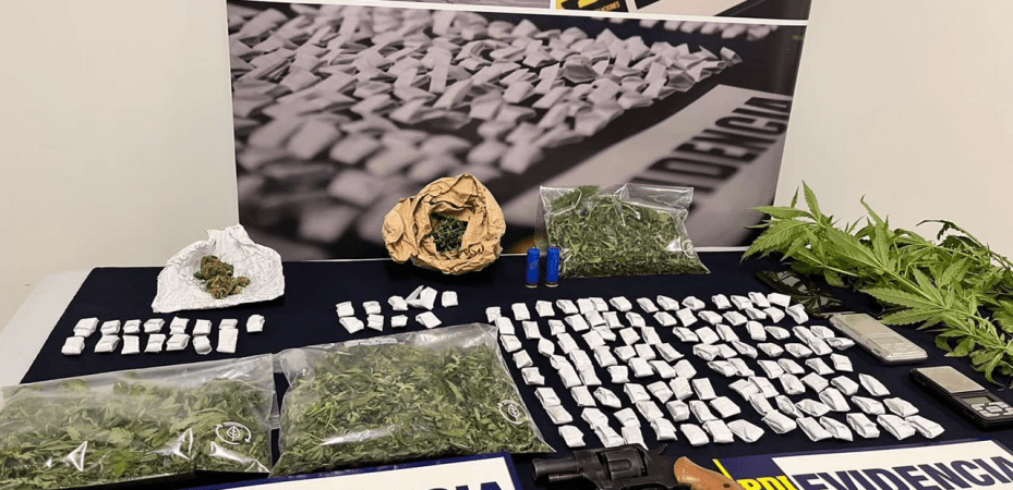 Además de 2 pistolas a fogueo, 1 de ellas adaptada para disparo, $760.000 de dinero en efectivo, 4 balanzas digitales y elementos para la dosificación de la droga.