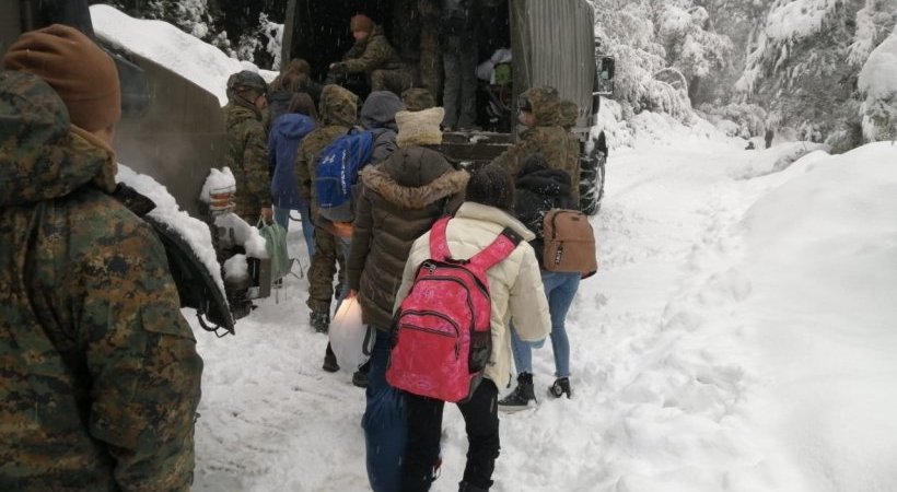 Personal pertenecientes al Destacamento de Montaña N°9 “Arauco”, mientras se dirigían a una nueva jornada de instrucción, prestaron ayuda a más de una veintena de personas, entre ellos 19 niños, quienes quedaron en medio del camino a la zona de Antillanca en Puyehue, durante una fuerte nevada que se reportó en la zona.