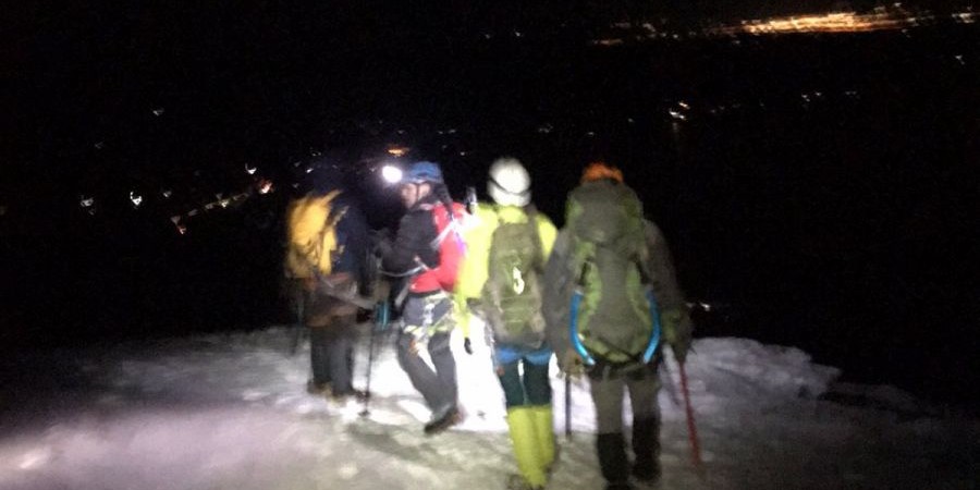 En ese lugar los montañistas se cruzaron casualmente con ellos -pues venían bajando desde la cumbre- quienes al borde del pánico les pidieron ayuda para poder descender.