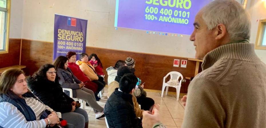Gracias al trabajo coordinado entre la Delegación Presidencial Regional de Los Lagos, la Municipalidad de Puerto Montt, Carabineros de Chile y la Junta de Vecinos Fundadores de Alerce Histórico, se realizó una charla del programa “Denuncia Seguro”, con el objetivo de poder informar a los vecinos sobre lo que deben hacer en caso de querer denunciar un hecho delictual de manera anónima.