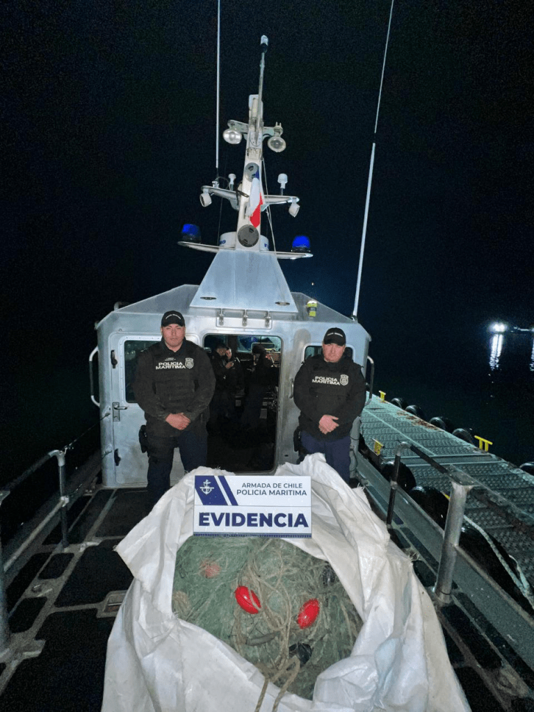 Con un total de 1.050 kilos del recurso a bordo, se cursaron las citaciones correspondientes y se incautó el recurso en poder del infractor, a la espera de lo que determine el Ministerio Público, y 500 metros de red de enmalle en poder de Sernapesca.