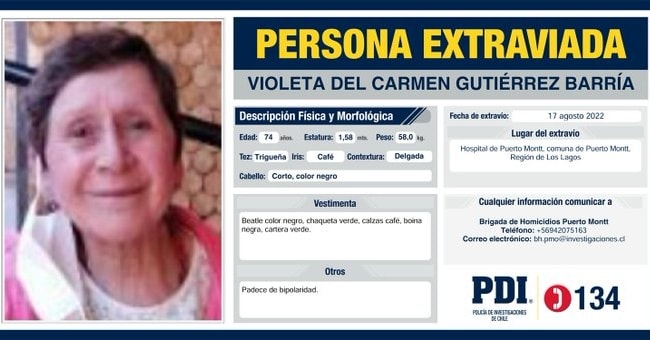 Este jueves se llevó a cabo una nueva búsqueda de Violeta Gutiérrez, adulta mayor desaparecida hace más de dos años desde el Hospital Regional de Puerto Montt.