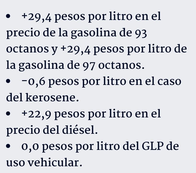 Para esta semana, la variación estimada en el precio de los combustibles es de:
