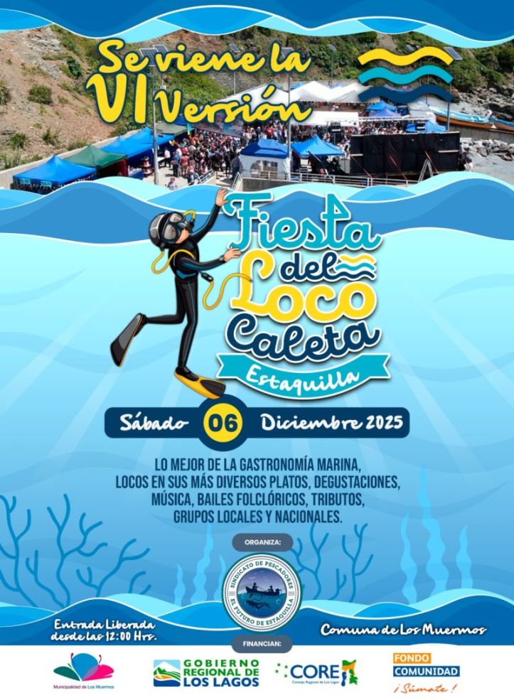 El Sindicato de Pescadores el Futuro de Caleta Estaquilla, invita a toda la región a participar en la 6ª versión de la tradicional “Fiesta del Loco”, que se realizará el sábado 6 de diciembre de 2025, desde las 12:00 horas en el muelle de la caleta.