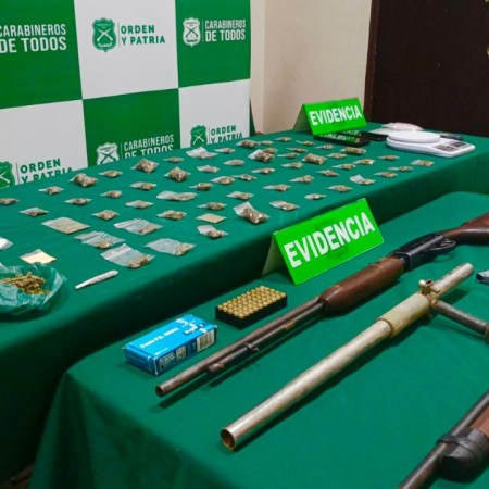 Puerto Montt: Carabineros del OS-7 detiene a pareja por tráfico de drogas, decomisa armas de fuego y “lápiz” adaptado para disparar